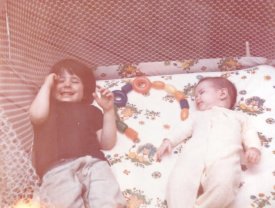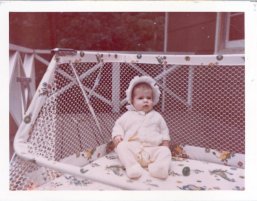 | CINDY Baby Wonderful! On what would have been Cindy's 34th birthday, I decided to celebrate Cindy as my baby sister. My only experience with babies before the birth of my son , was helping my mom with Cindy. As you can see from the playpen photo, we enjoyed playing together. We both loved animals of all kinds, especially caterpillars and Mexican jumping beans. Cindy was a good natured baby and always looked up to her big brothers. It took me a long time to realize just how intense her curiosity about the world was. As my son is beginning his journey, he also seems to have a desire to explore his world. He is happiest when out and about in the park, delighting in the sway of the palm trees, the sounds of the birds and the motion of the ride. I will honor Cindy's 34th year of remembrance by paying careful attention to those subtle cravings of my son to reach out further than we might expect. Did I mention that my son can already play notes on the keyboard? Oh goodness, am I going to be one of those piano lesson pushers? Yup, I think so. Thanks Cindy and Happy Birthday. Love Richie 12/7/2006 |