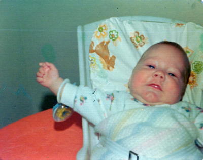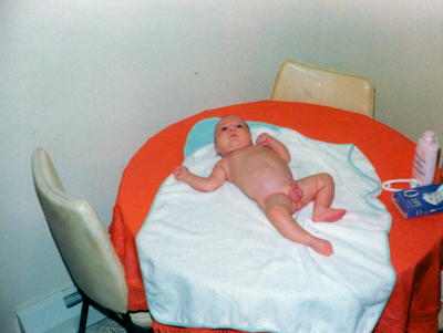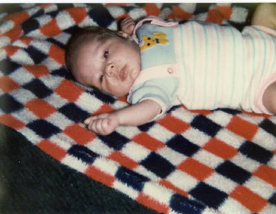 Note: Baby on checkered blanket is